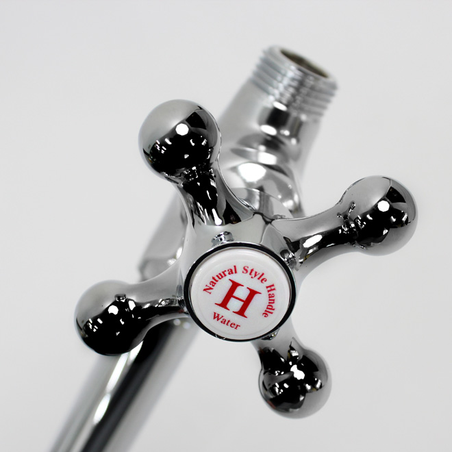 クロスハンドルにお湯をあらわす「H」のポイントが可愛い床給水用のストレート止水栓です。