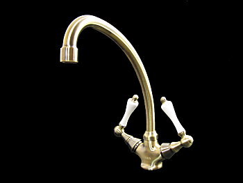 キッチン用に最適なグースネックタイプの混合水栓です。年月をかけて仕様変更を繰り返した事により、デザイン・仕様・使い勝手の全てが優れたバランスで完成されたアンティーク蛇口となりました。